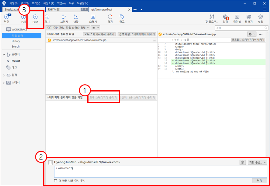 5.6.2. 커밋메시지 작성, 커밋 버튼 클릭