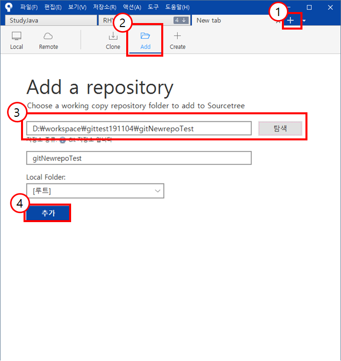 5. SourceTree에서 레파지토리-로컬드라이브 연동