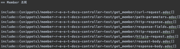-> 테스트 결과가 adoc파일로 생성됨(snippets)