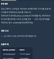 | 핸드폰 번호 가리기 ( 프로그래머스 Lv1 ) - 완료 (0) | 2019.05.28 |